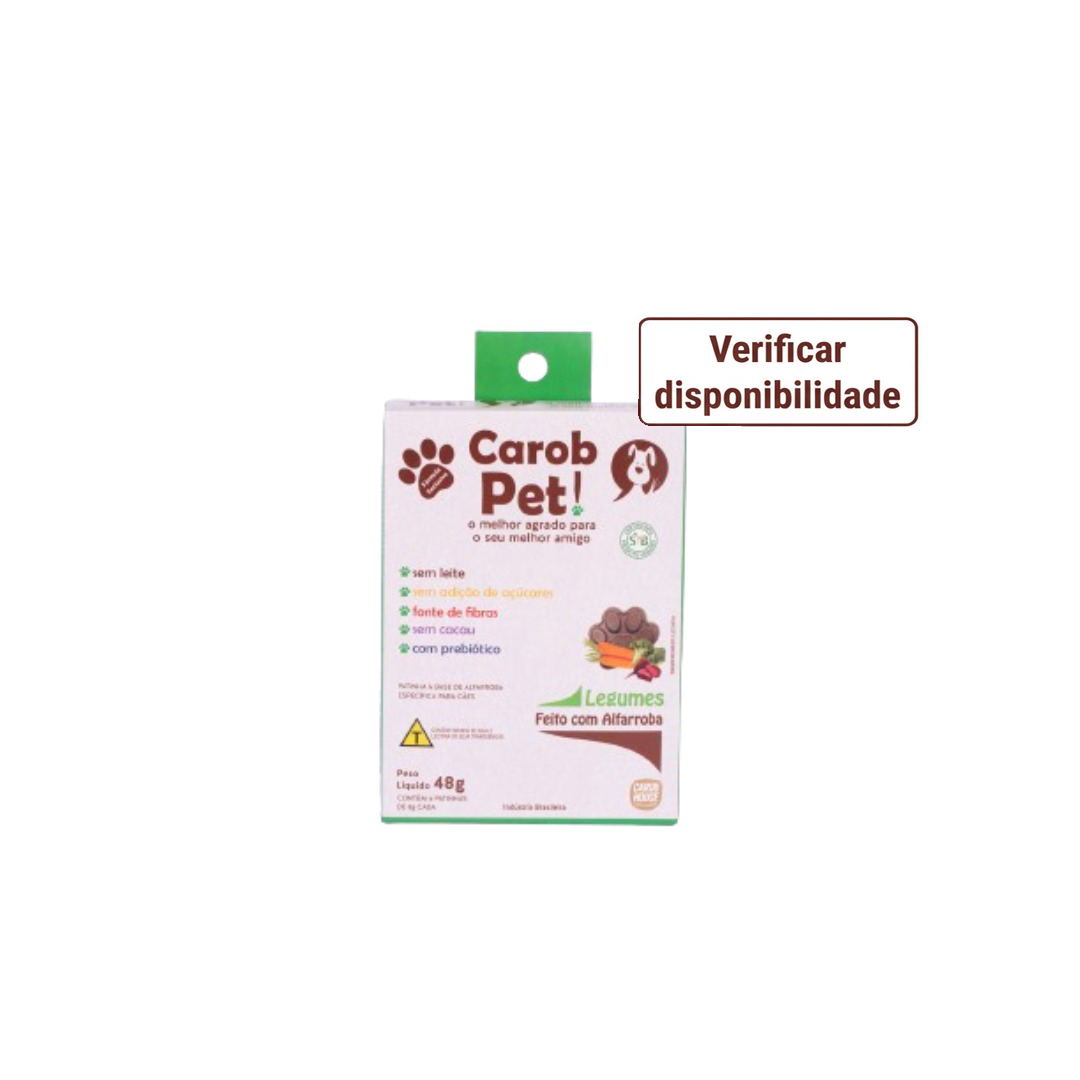 CAROB PET COM LEGUMES é um alimento em formato de patinhas que foi desenvolvido especialmente para cães. Sua fórmula apresenta a exclusiva tecnologia da CAROB HOUSE e, por isso, é produzida com Alfarroba. É isenta de Teobromina e Cafeína (metilxantinas) que são substâncias tóxicas para a alimentação do seu pet.