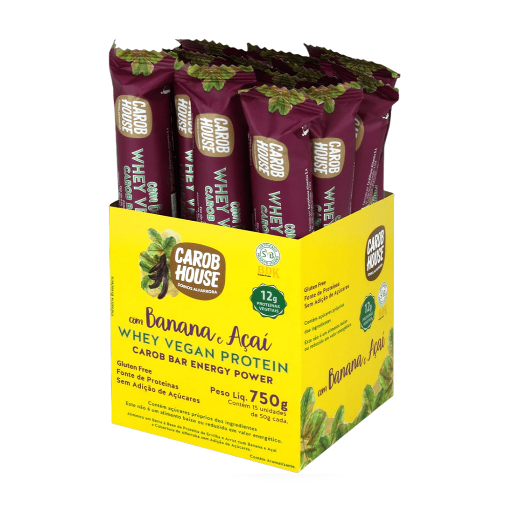 WHEY VEGAN CAROB ENERGY BAR BANANA E AÇAÍ 50G - DISPLAY C/15 UNID